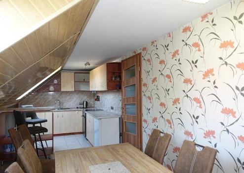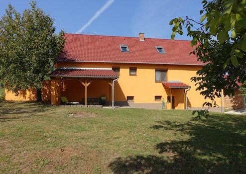 A szép kilátású, gondozott kertben 10 termő gyümölcsfa található.