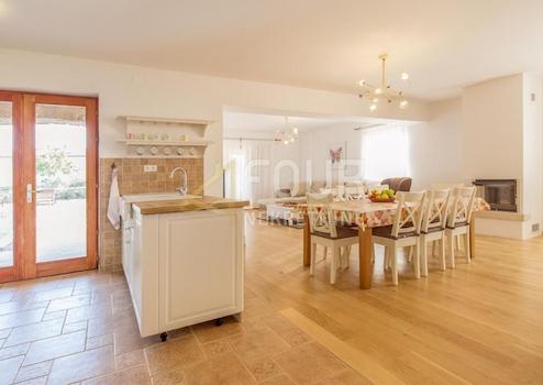Der Außenbereich ist eine Oase zum Genießen und Entspannen – ein großer 50 m2 großer Swimmingpool mit Liegewiese, ein Grill, ein hölzernes Kinderhaus und ein Spielplatz, ein Garten voller mediterraner Pflanzen und eine Außendusche. Die Villa ist komplett ausgestattet und möbliert, verfügt über ein Videoüberwachungssystem, Sicherheitstüren und eine Alarmanlage und bietet vier Parkplätze.