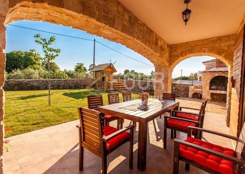 Eine wunderschöne freistehende Steinvilla zu verkaufen, die 2015 im mediterranen Stil gebaut wurde und eine perfekte Kombination aus Authentizität und modernem Komfort bietet. Sie steht auf einem großzügigen Grundstück von 954 m2 und die Wohnfläche beträgt 133 m2, verteilt auf das Erdgeschoss und ein Dachgeschoss.