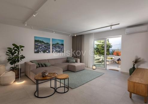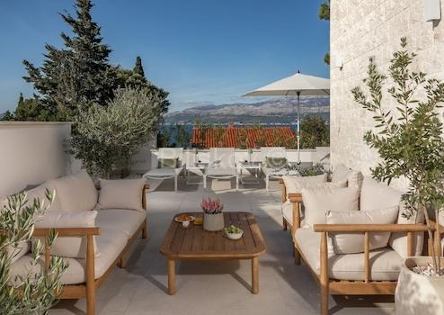 Das Haus verfügt über eine wunderschön dekorierte Terrasse mit viel Brac-Stein. Es wurde im dalmatinischen Stil erbaut.