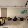 Zu den Einrichtungen auf der grossen Terrasse im Erdgeschoss gehören ein Swimmingpool, ein Grill, ein Esstisch im Freien und ein Ruhebereich.