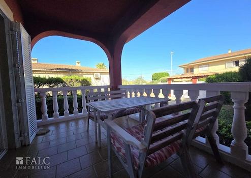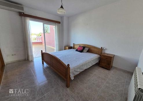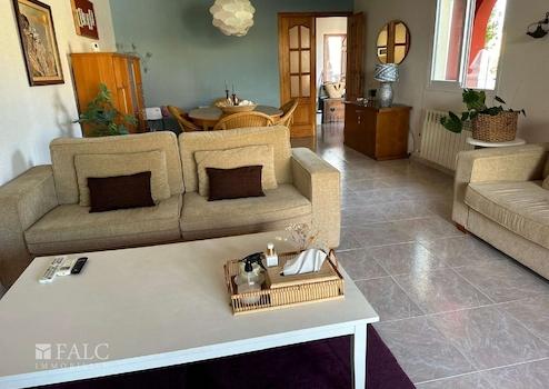 Mit einer bebauten Fläche von 160 m² auf einem 395 m² großen Grundstück befindet sich das Haus in ausgezeichnetem Zustand und erstreckt sich über zwei Etagen. Beim Betreten wird man von einem geräumigen und hellen Wohnzimmer empfangen, das nahtlos in die anderen Gemeinschaftsbereiche übergeht. Die Immobilie verfügt über 4 Schlafzimmer, von denen drei Zugang zu privaten Terrassen bieten, sodass man den Außenbereich direkt vom eigenen Zimmer aus genießen kann. Darüber hinaus gibt es 1 Gäste-WC und 2 voll ausgestattete Badezimmer, eines davon en-suite, was zusätzlichen Komfort bietet.