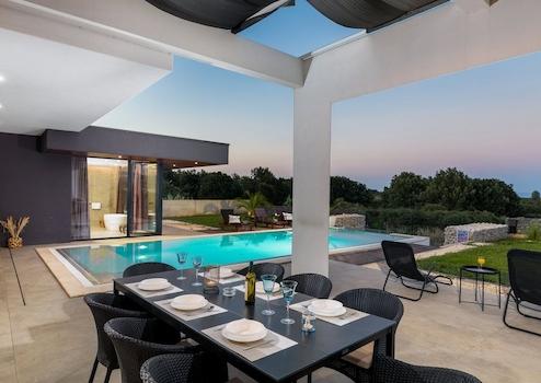 LIŽNJAN – ein kleines Dorf südöstlich von Pula, an einem Hang gelegen, der zum Meer hin abfällt, nur 2 km von den ersten Stränden entfernt. Neben der traditionellen Landwirtschaft betreiben die Bewohner auch Tourismus. Bei Einheimischen und Touristen bekannt als ruhiger Ort, ideal für Urlaub und einen Spaziergang am Meer mit freiem Blick auf die Inseln Cres und Lošinj. Jedes Jahr zieht es immer mehr Touristen an, und die jüngste Entscheidung, ein modernes 5-Sterne-Hotel zu bauen, trägt dazu bei. Parallel zum Bau des neuen Hotels wird auch in die Erneuerung der Infrastruktur und damit in die Angebotsvielfalt investiert. Diese völlig neue Ferienvilla befindet sich an diesem Ort, nur 600 m vom ersten Strand entfernt. Es ist eine moderne architektonische Attraktion und eines der schönsten Häuser in Istrien, das von den renommiertesten kroatischen Magazinen gelobt wird. Mit seiner wunderschönen Aussicht auf das Meer und die Inseln Cres und Lošinj wird es Sie sicherlich mit seinem Innen- und Außendesign sowie der Qualität seiner Ausführung verzaubern. Auf einer Wohnfläche von 328 m², die auf zwei Etagen aufgeteilt ist, können Sie den gesamten Komfort dieser Villa genießen. So befindet sich im geräumigen und luftigen Erdgeschoss, in einem größeren „Open Space“-Bereich, ein schönes und modernes Wohnzimmer, das durch große Glaswände mit Tageslicht beleuchtet wird. In der modernen Küche, die mit Techniken ausgestattet ist, die von den besten Künstlern und Designern der Welt stammen, können Sie die köstlichsten Köstlichkeiten zubereiten. Die gleichen Köstlichkeiten können Sie mit Ihrer Familie und Freunden im Esszimmer genießen, das das Wohnzimmer von der Küche trennt. Darüber hinaus befindet sich im Erdgeschoss eines der Schlafzimmer mit eigenem Bad und Ausgang zum Hof, sowie ein separates Gäste-WC. Vom Erdgeschoss gibt es durch eine Glaswand einen Ausgang zu einer überdachten Außenterrasse und einem schönen „Infinity“-Pool sowie einem schönen sonnigen grünen Garten. Eine Innentreppe führt in die obere Etage, wo sich 3 geräumige, modern eingerichtete und beleuchtete Schlafzimmer befinden, von denen jedes über ein eigenes Badezimmer verfügt. Für natürliches Licht in den Zimmern sorgen größere Glaswände, die Ihren Aufenthalt noch angenehmer und die Räume geräumiger machen. Abgerundet wird die ganze Geschichte durch einen angelegten und gepflegten Garten von 770m2. Der Hof ist komplett eingezäunt, wodurch das gewünschte Maß an Sicherheit und Privatsphäre erreicht wird. Ein automatisches Bewässerungssystem kümmert sich um die schöne Grünfläche und es sind Parkplätze für 6 Autos vorhanden. Der zentrale Teil des Hofes wird von einem wunderschönen „Infinity“-Schwimmbecken von 42 m² mit einer Liegewiese eingenommen. Es handelt sich um ein „Infinity“, d. h. ein Zuflussbecken auf drei Seiten, während auf einer Seite eine massive Glaswand vorhanden ist, die nachgibt die Wirkung eines Aquariums. Der Pool ist mit der modernsten Wasserqualitätsaufbereitungstechnik mit verstärkter therapeutischer Wirkung ausgestattet, da Chlor durch Elektrolyse aus Salz auf natürliche Weise gewonnen wird, sowie mit einer sterilisierenden UV-Lampe. Der Pool wird zusätzlich durch eine Inverter-Wärmepumpe und ein auf dem Dach befindliches Sonnenkollektorensystem beheizt, was das Schwimmen auch in den Momenten nach der Sommersaison angenehm macht. ZUSÄTZLICHE INFORMATIONEN: * Die Villa ist mit einer intelligenten Klimaanlage zum Heizen und Kühlen sowie Fußbodenheizung in allen Räumen ausgestattet. * An den Außenwänden wurde eine 15-cm-Isolierung angebracht. * Die Villa ist für Menschen mit Behinderungen geeignet, da das gesamte Erdgeschoss keine Treppen hat und auf einer Ebene liegt, einschließlich des unteren Raums. * Die angegebenen Preise verstehen sich inklusive der gesetzlichen Mehrwertsteuer.