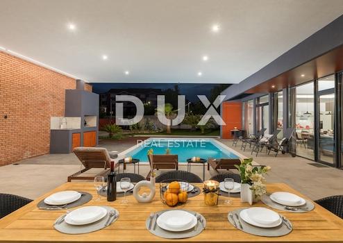 ISTRIEN, LIŽNJAN – ein kleines Dorf südöstlich von Pula, an einem Hang gelegen, der zum Meer hin abfällt, nur 2 km von den ersten Stränden entfernt. Neben der traditionellen Landwirtschaft betreiben die Bewohner auch Tourismus. Bei Einheimischen und Touristen bekannt als ruhiger Ort, ideal für Urlaub und einen Spaziergang am Meer mit freiem Blick auf die Inseln Cres und Lošinj. Jedes Jahr zieht es immer mehr Touristen an, und die jüngste Entscheidung, ein modernes 5-Sterne-Hotel zu bauen, trägt dazu bei. Parallel zum Bau des neuen Hotels wird auch in die Erneuerung der Infrastruktur und damit in die Angebotsvielfalt investiert. Diese brandneue Villa mit einem unvergesslichen architektonischen Ausdruck befindet sich an diesem Ort, nur 600 m vom ersten Strand entfernt. Die Inspiration für diese moderne Diva war das Grand Arche-Gebäude in Paris. Neben seiner wunderschönen Aussicht auf das Meer und die Inseln Cres und Lošinj wird es Sie sicherlich auch mit seinem Innen- und Außendesign sowie der Qualität der Ausführung verzaubern, besonders hervorzuheben ist die innere Eingangshalle mit einer Höhe von 7,5 Metern . Auf der 429 m² großen Wohnfläche, die auf zwei Etagen aufgeteilt ist, können Sie den gesamten Komfort dieser Villa genießen. So befindet sich im großzügigen und luftigen Erdgeschoss, im größeren „Open Space“-Bereich, ein schönes und modernes Wohnzimmer, das durch eine große Glaswand mit Tageslicht erhellt wird. In der modernen Küche, die mit Techniken ausgestattet ist, die von den besten Künstlern und Designern der Welt stammen, können Sie die köstlichsten Köstlichkeiten zubereiten. Die gleichen Köstlichkeiten können Sie mit Ihrer Familie und Freunden im Esszimmer genießen, das das Wohnzimmer von der Küche trennt. Darüber hinaus befindet sich im Erdgeschoss eines der Schlafzimmer mit eigenem Bad und Ausgang zum Hof, sowie ein separates Gäste-WC. Vom Erdgeschoss gibt es einen Ausgang durch eine Glaswand zu einer überdachten Außenterrasse und einem schönen „Infinity“-Pool sowie einem sonnigen grünen Garten. Eine Innentreppe führt in die obere Etage, wo sich 3 geräumige, modern eingerichtete und beleuchtete Schlafzimmer befinden, von denen jedes über ein eigenes Badezimmer verfügt. Für natürliches Licht in den Zimmern sorgen größere Glaswände, die Ihren Aufenthalt noch angenehmer und die Räume geräumiger machen. Abgerundet wird die ganze Geschichte durch einen angelegten und gepflegten Garten von 795m2. Der Hof ist komplett eingezäunt, wodurch das gewünschte Maß an Sicherheit und Privatsphäre erreicht wird. Ein automatisches Bewässerungssystem kümmert sich um die schöne Grünfläche und es sind Parkplätze für 6 Autos vorhanden. Der zentrale Teil des Hofes wird von einem wunderschönen „Infinity“-Schwimmbecken von 43 m² mit einer Liegewiese eingenommen. Es handelt sich um ein „Infinity“, d. h. ein Zuflussbecken auf drei Seiten, während auf einer Seite eine massive Glaswand vorhanden ist, die nachgibt die Wirkung eines Aquariums. Der Pool ist mit modernster Wasserqualitätsaufbereitungstechnik mit verstärkter therapeutischer Wirkung ausgestattet, da Chlor durch Elektrolyse aus Salz auf natürliche Weise gewonnen wird, sowie mit einer sterilisierenden UV-Lampe. Der Pool wird zusätzlich durch eine Inverter-Wärmepumpe und ein auf dem Dach befindliches Sonnenkollektorensystem beheizt, was das Schwimmen auch in den Momenten nach der Sommersaison angenehm macht. ZUSÄTZLICHE INFORMATIONEN: * Die Villa ist mit einer intelligenten Klimaanlage zum Heizen und Kühlen sowie Fußbodenheizung in allen Räumen ausgestattet. * An den Außenwänden wurde eine 15-cm-Isolierung angebracht. * Die Villa ist für Menschen mit Behinderungen geeignet, da das gesamte Erdgeschoss keine Treppen hat und auf einer Ebene liegt, einschließlich des unteren Raums. * Die angegebenen Preise verstehen sich inklusive der gesetzlichen Mehrwertsteuer.