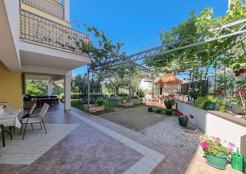 Zum Verkauf steht ein attraktives Apartmenthaus auf einem 700 m² großen Grundstück in Žaborić, nur wenige Schritte vom Strand entfernt. Dieses Anwesen bietet einen wunderschön angelegten Garten und einen weitläufigen Hof, der die Möglichkeit bietet, einen Außenpool einzurichten.