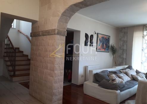 Das Haus erstreckt sich über zwei Etagen, mit einer Gesamtfläche von 240m2, und verfügt über einen Keller von 30m2 mit Fenster und einen durchgehenden Dachboden.