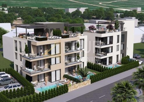 Zum Verkauf steht eine Luxuswohnung in einem Neubau, gelegen in einer prestigeträchtigen Lage in Sukošan, erste Reihe am Meer, nur 50 Meter vom Strand entfernt.