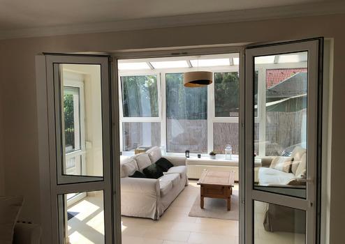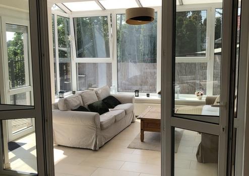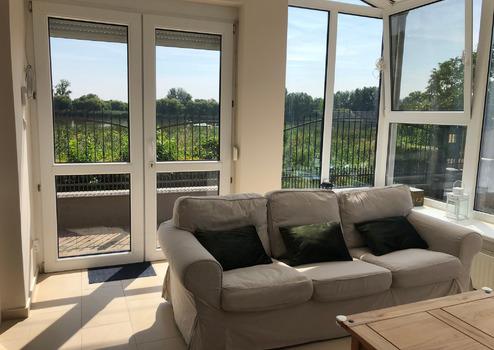 - Wintergarten mit Vollverglasung auf beiden Seiten mit Blick auf die Donau