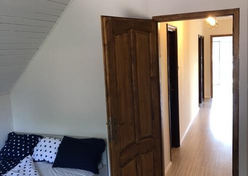 A lépcsőházban feljutva az emeletre egy hatalmas fogadó térbe lépünk, innen nyílik a fürdőszoba, wc és a hálószoba is. A hálószoba tágas (18,2 m) és a panoráma egyszerűen leírhatatlan. A Kis-Duna szépsége egyszerűen meseszép, amit megcsodálhatunk az erkélyről is ha kilépünk a hatalmas erkély ajtón.