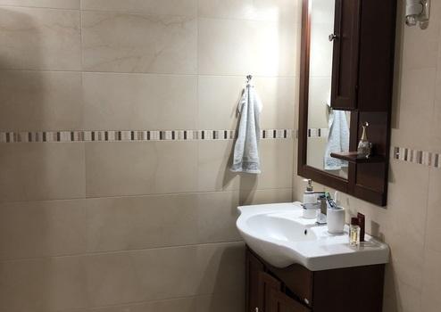 A fürdőszobában (6,27 m2) egy zuhanyzó és egy mosdó került kialakításra. A mellette lévő helyiségben a wc (1,8 m2) került, amiben szintén van kézmosó.