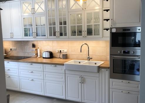 Einer der Eingänge zum Haus führt von der Terrasse aus, die zur Küche (13,5 m2) führt. Die Küche erhielt im Jahr 2022 neue Küchenmöbel nebst Geräten, die natürlich noch unter Garantie stehen (Ikea).