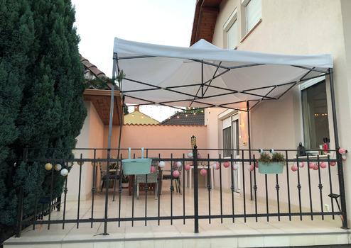Tovább haladva a vendégháztól egy nagyon izgalmas teraszra érünk, ami kiváló lehetőséget ad baráti összejövetelekre (24 m2).