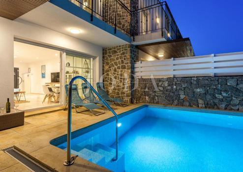 Die Villa besteht aus einem Erdgeschoss und einem Obergeschoss, wo sich ein Wohnzimmer mit Küche und Esszimmer, drei Schlafzimmer, drei Badezimmer und eine Terrasse befinden. Vor der Villa befindet sich eine Terrasse mit Liegewiese und einem 20 m2 großen Swimmingpool. Die gesamte Villa ist mit Fußbodenheizung ausgestattet und klimatisiert (Multisplit-System). Das Heiz- und Kühlsystem ist an die Wärmepumpe angeschlossen. Die Villa verfügt über einen eigenen Abstellraum und einen Maschinenraum im vorderen Teil des Gartens.