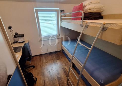 Uvala Soline, Wohnung zum Verkauf in einem hohen Dachgeschoss von 78,62 m2. Die Wohnung besteht aus zwei Schlafzimmern, einem Wohnzimmer mit Küche und Esszimmer, einem Badezimmer, einer Toilette, einem Flur und einer geräumigen Loggia mit Blick auf das Meer. Die Wohnung steht möbliert und ausgestattet, klimatisiert und bezugsfertig zum Verkauf. Schöne Lage, 100 Meter vom Meer entfernt.