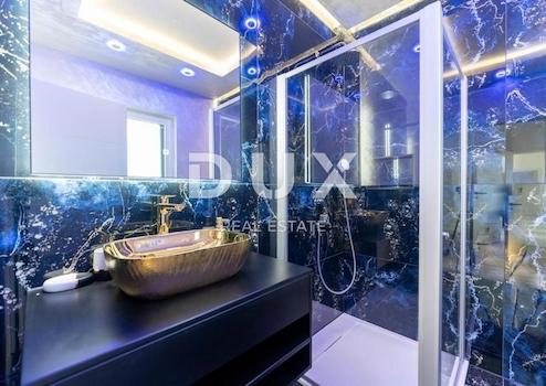 BESCHREIBUNG DER VILLA: Neben den zahlreichen hochwertigen Elementen dieser Villa, die wir hervorheben möchten, ist es wichtig zu erwähnen, dass die Villa insgesamt über 175 m² Wohnfläche verfügt und sich auf zwei Etagen verteilt Erdgeschoss und erster Stock. Im Erdgeschoss der Villa befindet sich eine Eingangshalle mit Platz für eine Garderobe, die uns dann in ein extravagantes Wohnzimmer führt, das nach dem „Open Space“-System ohne Trennwände gestaltet ist. Hier haben Sie die Möglichkeit, Ihre Zeit im geräumigen Wohnzimmer zu verbringen, das den zentralen Teil des Erdgeschosses einnimmt und sich perfekt zum Entspannen nach einem aktiven Tag und zum Verbringen von Zeit mit Freunden und Familie eignet. Direkt an das Wohnzimmer angeschlossen sind ein geräumiges Esszimmer, das Platz für die ganze Familie bietet, und eine moderne und hervorragend ausgestattete Küche mit Kochinsel. Was das Erdgeschoss der Villa ziert, sind großzügige bewegliche Glaswände, die das Innere der Villa kompromisslos mit dem Außenbereich im Innenhof verbinden. Dadurch entsteht ein Gefühl der Unendlichkeit in der Kommunikation zwischen dem Inneren der Villa und dem angelegten Garten. So haben Sie vom Wohnzimmer aus direkten Zugang zu den überdachten Terrassen und zum Swimmingpool mit Strand- und Liegewiese. Eine Innentreppe führt in die obere Etage der Villa, wo sich drei luxuriöse und geräumige Schlafzimmer befinden, von denen jedes über ein eigenes Bad und direkten Zugang zur überdachten Terrasse verfügt. Von derselben Terrasse aus haben Sie einen Blick auf das Meer und den Sonnenuntergang, was sie ideal macht, um am Ende eines aktiven und anstrengenden Tages ein Glas Ihres Lieblingsweins zu trinken.