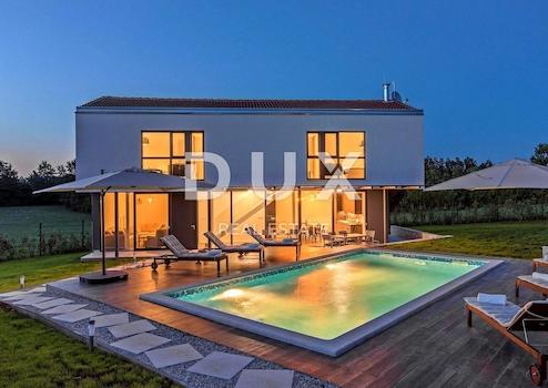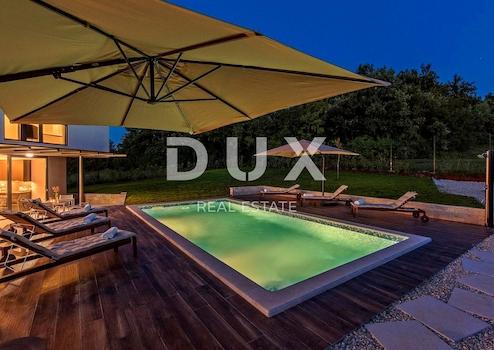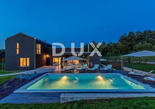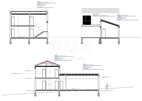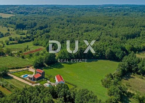 ISTRIEN, BARBAN – Drei attraktive Immobilien für Investitionen Barban ist eine kleine malerische mittelalterliche Siedlung im Akropolis-Stil im südlichen Teil Ostistriens, oberhalb des Raša-Flusstals gelegen. Gut erhaltene architektonische Bauten aus der Zeit des Barock und der Gotik, Fresken und glagolitische Inschriften, Kirchen, Paläste und Stadtmauern, das Ritterspiel Ring Race, das traditionelle Weinfest und das Feigenfest machen Barban äußerst attraktiv. Die Gemeinde Barban, die in der Raško-Bucht Zugang zum Meer hat, erstreckt sich über eine Fläche von 100 km². Außer Barban gibt es noch 31 weitere Siedlungen im wunderschönen Grün von Barbanština. In dieser Landschaft mit malerischen und sanften Ausblicken stehen drei attraktive Anlageobjekte zum Verkauf. Sie befinden sich am Rande der Bauzone in einer bescheidenen Siedlung, deren Lage ein authentisches Erlebnis einer kleinen istrischen Stadt, Intimität, Entspannung von aller Hektik und eine Pause vom Lärm bietet und gleichzeitig nah genug an den dynamischen Städten liegt von Istrien mit einer Reihe von Annehmlichkeiten. Zum Verkauf steht eine Immobilie bestehend aus zwei Häusern mit Swimmingpool und Bauland, verteilt auf drei Katasterparzellen, die zusammen ein einzigartiges Ganzes bilden. Die Häuser zeichnen sich durch Bauqualität aus, die langfristige Zufriedenheit und Wohnqualität garantiert, sowie durch zeitgenössische Architektur, die die Umwelt nicht stört, sondern eine Synergie aus natürlicher Umgebung und modernem Design schafft. Jedes Haus ist als eine Wohneinheit mit einem Wohnbereich und vier Schlafzimmern mit eigenem Bad auf zwei Etagen definiert; Erdgeschoss und erster Stock. Jedes Haus liegt in einem angelegten, gärtnerisch angelegten und eingezäunten Garten und beide verfügen über einen eigenen Swimmingpool mit Liegewiese. Das Baugrundstück für Wohnzwecke mit einer Fläche von 1.763 m² befindet sich gemäß Raumplanungsunterlagen in einem unbebauten Teil des Baugebietes der Siedlung. Das Grundstück hat Zugang zu einer öffentlichen Verkehrsfläche – einer asphaltierten Straße, die gesamte grundlegende Infrastruktur befindet sich in unmittelbarer Nähe und das Gelände ist flach und sauber. Aufgrund der Mikrolage, der Konfiguration, des ordnungsgemäßen Eigentums und der Dokumentation stellen diese Immobilien eine unbestreitbare Investitionsmöglichkeit dar. Alle drei Immobilien sind Eigentum einer juristischen Person und werden zusammen mit dem Unternehmen verkauft. Sehr geehrte Kunden, die Agenturprovision wird gemäß den Allgemeinen Geschäftsbedingungen berechnet: www.dux-nekretnine.hr/opci-uvjeti-poslovanja
