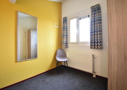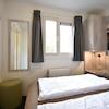 Das geräumige Schlafzimmer hat ein bequemes Doppelbett auf einem weichen Teppichboden, der eine warme und gemütliche Atmosphäre schafft. An der linken Seite des Zimmers befindet sich ein großer Heizkörper, der den Raum an kalten Tagen gut wärmt. Es gibt auch ein großes Fenster, das viel natürliches Licht hereinlässt und einen schönen Blick auf die Umgebung bietet.