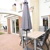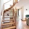 Das Wohnzimmer ist gefliest, was nicht nur ein elegantes Aussehen bietet, sondern auch leicht zu pflegen ist. Die große Schiebetür im Wohnzimmer bietet viel natürliches Licht und ermöglicht einen direkten Zugang zur Terrasse, sodass Innen- und Außenbereich nahtlos ineinander übergehen. Die offene Küche, die mit modernen Geräten ausgestattet ist, hat zusätzlich zu den Schiebetüren eine eigene Tür zur Terrasse, ideal für Mahlzeiten im Freien. Eine offene Treppe im Wohnzimmer führt in den ersten Stock, was dem Haus eine luftige und geräumige Atmosphäre verleiht.
