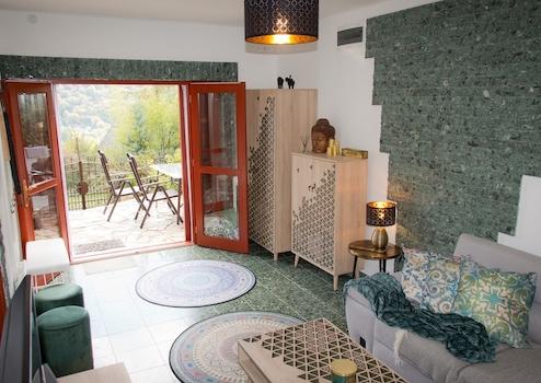 Jedes Zimmer im Gebäude und auf dem Gelände bietet einen wunderschönen Blick auf das Dorf Orfű und die West-Mecs-Berge.