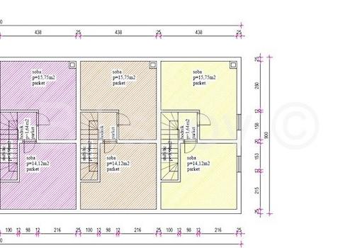 Zum Verkauf stehen drei dreistöckige, fünfzimmerige Wohnungen mit einer Gesamtfläche von 334,50 m² in einem unfertigen Gebäude, dessen Bau im Jahr 2008 begonnen wurde.