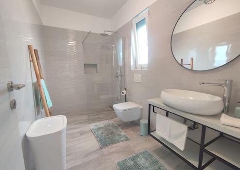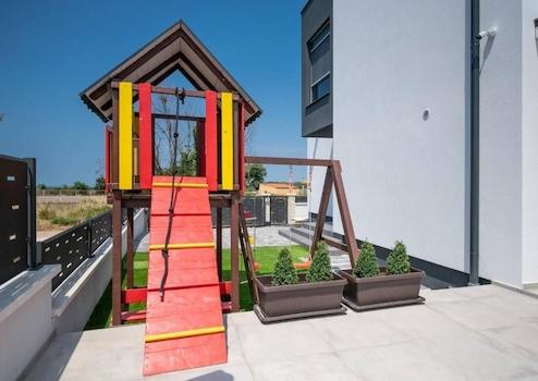 Dank einer reichen Geschichte, deren Spuren bis in die Antike zurückreichen, einem sehr geeigneten Klima und außergewöhnlicher Naturschönheit, vereint in einer einzigartigen Kombination aus dem grünen Landesinneren und der blau-blauen Küste der Adria, werden Sie Vodnjan und seine Umgebung begeistern mit seinem Charme und seinem kulturellen Erbe sowie einem vielfältigen Angebot an Aktivitäten. Wir bieten eine moderne Villa in einer kleineren und ruhigen Wohngegend an, die alles bietet, was Sie für einen sicheren Aufenthalt das ganze Jahr über benötigen. Es handelt sich um eine moderne und neu gebaute Villa mit insgesamt 150 m2 Wohnfläche auf einem Grundstück von 431 m2. Hochwertiger Bauansatz und modernes Design ziehen sich durch alle Räume der Villa. So verfügt das komplett offene Erdgeschoss über ein Wohnzimmer mit Küche und Esszimmer, eine Speisekammer, ein Gästebad und ein Schlafzimmer mit eigenem Bad und Zugang zur Terrasse und zum Garten. Dank großer Glaswände erhält der Raum ungehindertes Tageslicht, durch die es auch einen Ausgang zum Garten und eine größere überdachte Terrasse gibt. Über eine Innentreppe gelangen Sie bequem in die obere Etage, wo sich zwei weitere Schlafzimmer befinden, die jeweils über ein eigenes Badezimmer verfügen. Von der ersten Etage aus gibt es eine große Terrasse von ca. 25 m2 mit Blick auf das Meer und die Brijuni-Inseln . Im umzäunten und angelegten Garten gibt es einen 32 m² großen Swimmingpool sowie einen Außengrill und zusätzliche Einrichtungen für die Kleinsten. Wasser, Strom und Abwasser sind auf der überdachten Außenterrasse verlegt, während die Außenküche an den Kamin angeschlossen ist, so dass ein Außenkamin installiert werden kann. Die Villa verfügt über Videoüberwachung und eine Alarmanlage. Liebe Kunden, dies ist ein ideales Haus für einen Urlaub mit Familie und Freunden oder als Investitionsmöglichkeit im Tourismus.