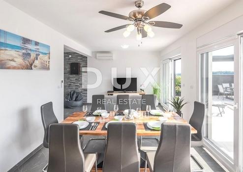 Dieses schöne Ferienhaus mit attraktivem und modernem Design befindet sich in der berühmten Touristenstadt Medulin, nahe dem Meer. Es ist mit hochwertigen Stilmöbeln eingerichtet und entspricht den höchsten Standards des modernen Tourismus. Im Erdgeschoss gibt es ein Wohnzimmer mit Blick auf den Pool, eine Küche und ein Badezimmer, im Obergeschoss befinden sich 4 Schlafzimmer und drei Badezimmer. Im Keller des Hauses gibt es einen Aufenthaltsraum mit vielen Brettspielen für Erwachsene und Kinder. Das Haus verfügt über eine weitere Ein-Zimmer-Wohnung. Hier werden Sie vom Schlafzimmer aus mit Sicherheit den wunderschönen Panoramablick auf das Meer und die Sonnenuntergänge genießen. Im Erdgeschoss des Hauses gibt es außerdem eine spezielle Ecke für die Unterhaltung Ihrer Jüngsten. Vom Wohnzimmer aus gelangen Sie auf die Terrasse, in deren Fortsetzung sich eine zum Entspannen ideale Liegewiese und ein 30 m² großer Swimmingpool befinden, der an heißen Sommertagen für Erfrischung sorgt. Zusätzliche Funktionen: - Klimawechselrichter zum Heizen und Kühlen - Videoüberwachung und Alarmsystem mit Sensoren - automatische Bewässerung von Grünflächen - Sonnenkollektoren zur Warmwasserbereitung - Außendusche - Whirlpool - 10 cm Fassadendämmung Dies ist eine ideale Gelegenheit für einen Safe und friedliches Leben oder als Investitionsmöglichkeit für touristische Zwecke.