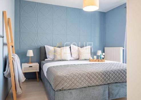 Im ersten Stock befinden sich drei Schlafzimmer, ein großes Badezimmer und eine 60m2 große Terrasse mit Blick auf den Garten.