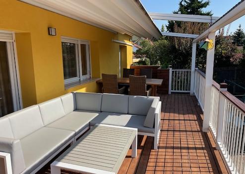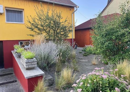 •Zöld és gyermekbarát oázis: A gondosan kialakított kert öntözőrendszerrel, csepegtetőkkel és külön kialakított konyha- és fűszerkerttel rendelkezik. A 30 m2-es terasz pedig ideális hely kellemes feltöltődéshez a mindennapokban. A kertben minden évszakban más virágzik, gyümölcsök teremnek, ékessége pedig egy már 30 éve folyamatosan fejlődő gyönyörű mammutfenyő.