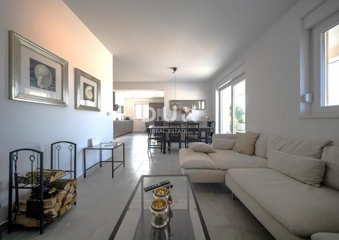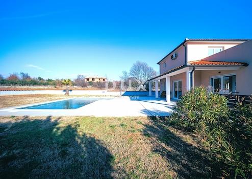 In der Umgebung des wunderschönen Fažana befindet sich diese außergewöhnliche Villa mit herrlichem Blick auf Olivenhaine und Weinberge sowie seitlichem Meerblick von der großzügigen Terrasse. In ruhiger Lage gelegen, bietet dieses Anwesen eine Oase der Ruhe und Privatsphäre und ist gleichzeitig nur 10 bis 15 Autominuten von den wunderschönen Stränden von Fažana und den Brijuni-Inseln entfernt.