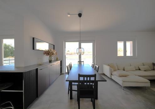 Da das Erdgeschoss eine funktionale Aufteilung mit Flur, Gästebad, Schlafzimmer mit eigenem Bad, Hauswirtschaftsraum und einem offenen Wohnbereich bietet, der mit dem Esszimmer und der Küche verbunden ist, vereint diese Villa Eleganz und Zweckmäßigkeit in perfekter Harmonie.