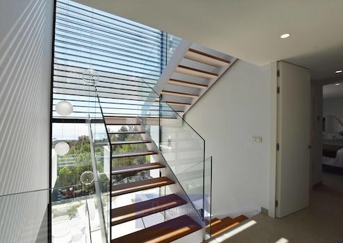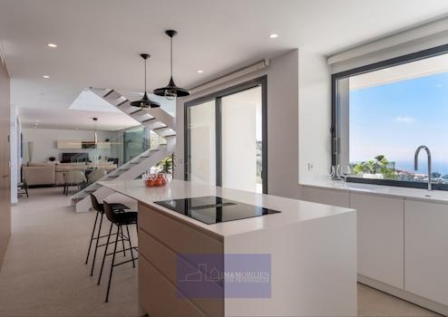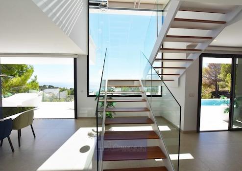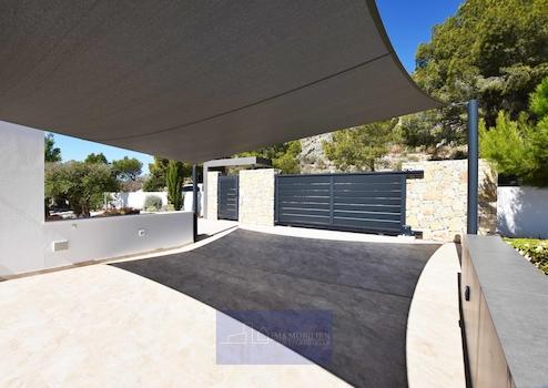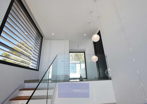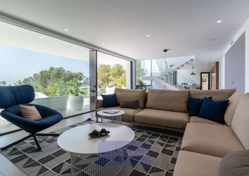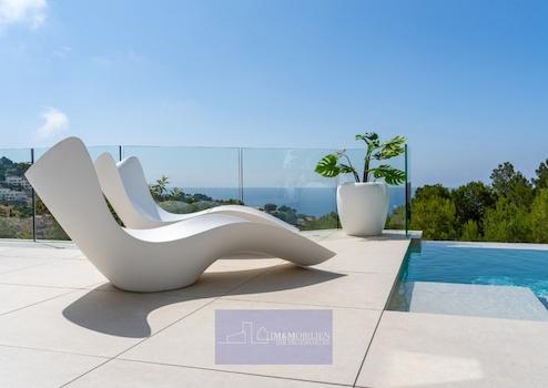 Große, freistehende Luxusvilla mit einem Design, bei dem Meerblick und natürliches Licht die Hauptrolle spielen. Nicht zu vergessen sind dabei die Außenanlagen und Terrassen, die dazu einladen, das herrliche mediterrane Klima in vollen Zügen zu genießen. Villa mit großzügigen, modernen und vielseitig nutzbaren Räumlichkeiten die durch ihre erlesene Auswahl an Materialien und Oberflächen und ihre Energieeffizienz bestechen.