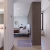 Der Eingang liegt in der oberen Etage und bietet dank seiner großen Fenster einen sehr schönen Ausblick auf das Meer.