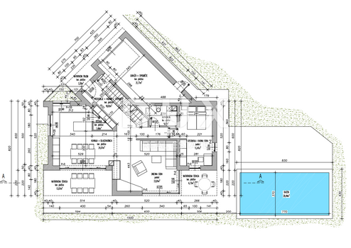 Baugrundstück von 600 m2 mit Konzeptentwurf für ein freistehendes Einfamilienhaus mit Swimmingpool. Das Baugrundstück verfügt über eine Zufahrt über eine asphaltierte Straße. Das Feld liegt in einer ruhigen und friedlichen Lage. Alle Versorgungseinrichtungen in der Nähe des Feldes. Ausgezeichnete Infrastruktur. Die Entwurfslösung sieht den Bau eines freistehenden Familienwohngebäudes mit drei Etagen (Keller, Erdgeschoss und 1. Etage) und einer Gesamtgrundrissprojektion auf dem Grundstück von 164,00 m2 vor. Geplantes Gebäude, zweckgebundenes freistehendes Familienwohnhaus, Etage + Erdgeschoss + 1 mit einer Wohneinheit auf allen drei Etagen. Die Etagen sind durch eine Treppe im Inneren des Gebäudes miteinander verbunden. Das Nebengebäude-Schwimmbad übernimmt die Funktion des Hauptgebäudes. Die Gesamtnettofläche beträgt 309,13 m2, die räumliche Aufteilung ist wie folgt gelöst: • Etage (Keller) – NKP 47,86 m2 – im Untergeschoss befinden sich folgende Räume: Treppenhaus, Toilette, Speisekammer, Taverne und Heizraum + Motor Zimmer. • P (Erdgeschoss) – NKP 131,66 m2 – im Erdgeschoss befinden sich: Garage + Abstellraum, Flur + Flur + Treppenhaus, Gästezimmer und Arbeitszimmer, Badezimmer, Küche + Esszimmer, Wohnzimmer, Speisekammer, zwei überdachte Terrassen und überdachte Veranda. • 1. (OG) - NKP 129,91 m2 - im 1. OG befinden sich: Flur + Treppenhaus, 3 Kinderzimmer, Elternzimmer, Ankleidezimmer, 2 Badezimmer, Waschküche, Abstellraum + Bügelraum, 2 überdachte Terrassen und 2 nicht überdachte Terrassen. Die gesamte Nettonutzfläche (NKP) des Gebäudes beträgt 309,13 m2. Die Wasserfläche des Pools beträgt 28,49 m2. Eine gute Gelegenheit für Investoren, die sich mit dem Bau von Wohngebäuden/Wohnungen/Appartements beschäftigen, aber auch für diejenigen, die ein Haus zur Miete/Ferienwohnung mit Pool oder ein Familienhaus/Villa in ruhiger und friedlicher Umgebung bauen möchten. IMMOBILIE IN TOLLER UND EINZIGARTIGER LAGE MIT GROSSEM POTENZIAL!!! VIŠKOVO: Die Gemeinde Viškovo liegt nordwestlich von Rijeka auf einer Fläche von nur etwa 20 Quadratkilometern. Die Nähe zu Rijeka, der Grenzübergang Opatija zu Slowenien, die Schönheit der Natur und die Bequemlichkeit, in einer Kleinstadt zu leben, sind Merkmale, die diese Gegend immer attraktiver machen. Heute verfügt Viškovo über alle notwendigen Einrichtungen für eine moderne Lebens- und Geschäftsweise. Im Zentrum des Dorfes gibt es: eine Kirche, eine Schule, einen Kindergarten, ein Postamt, ein Gesundheitszentrum, eine Apotheke, eine Bibliothek, Banken, eine Filiale der FINA, Kredit- und Spar- und Versicherungsgesellschaften, eine Tankstelle und eine Reihe von Handwerks- und Dienstleistungstätigkeiten. Es gibt mehrere größere Siedlungen. Die Siedlung Marinići ist die viertgrößte mit der größten Einwohnerzahl, gefolgt von: Viškovo, Marčelji, Saršoni, Mladenići, Sroki und Kosi.