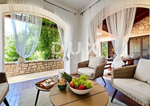 Umgeben von viel Grün in einer ruhigen Gegend in der Nähe der Stadt Buja steht eine rustikale Villa mit großem Garten zum Verkauf. Neben dem äußerst großzügigen Garten zeichnet sich das Anwesen durch eine Kombination aus Tradition und Moderne, Bauqualität und räumliche Organisation des Innenraums aus. Die komfortable Villa, komplett mit Stein verkleidet, fügt sich in Form und Farbe in das Dorf und die Landschaft ein und erstreckt sich über zwei Etagen mit funktionalem Grundriss. Das Erdgeschoss besteht aus einer Lobby, einem offenen Raumkonzept, der Küche, Esszimmer und Wohnzimmer mit Zugang zu einer überdachten Terrasse, Schlafzimmern und Badezimmern vereint. Die erste Etage besteht aus drei Schlafzimmern, zwei Badezimmern und einer Terrasse, die auch vom Hof aus über eine Außentreppe zugänglich ist. Der Hof ist voller Grün und mediterraner Pflanzen und die perfekte Harmonie wird durch einen 27 m² großen Swimmingpool mit Sonnendeck, eine überdachte Sommerküche und eine Nebenanlage mit Loungebereich und Abstellraum abgerundet.