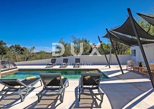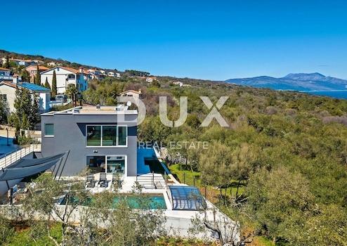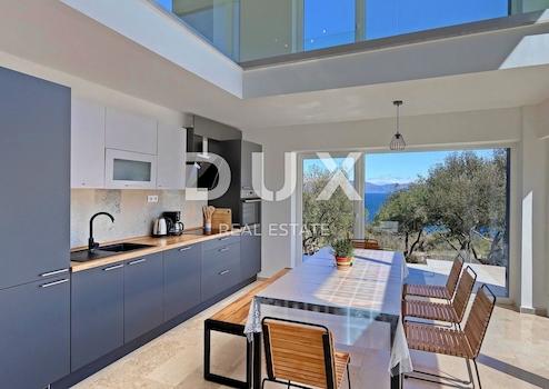 An der südöstlichen Küste Istriens, wo grüne Hügel auf das Meer treffen, wo Natur und Erbe zusammenkommen, gibt es zwei Städte ähnlicher Größe mit unterschiedlichen, sich aber gegenseitig ergänzenden Charakteren – Labin und Rabac, nur vier Kilometer voneinander entfernt. Rabac wird wegen seiner weißen Kiesstrände, der üppigen mediterranen Vegetation und dem kristallklaren Meer auch die Perle der Kvarner-Bucht genannt. Einst ein kleines Fischerdorf, ist Rabac heute ein attraktives Touristenziel, das in einem Netz farbenfroher Straßen eine Fülle kultureller Veranstaltungen verbirgt. Die grüne Umgebung von Rabac und das malerische Hinterland laden das ganze Jahr über zu Abenteuern, Forschung und Erholung ein. Unweit von Rabac und Labin in einer kleinen Siedlung am Meer steht eine Villa mit Panoramablick auf das Meer zum Verkauf. Es befindet sich in einer ruhigen Gegend mit einer Aussicht, die Učka, die Stadt Rijeka, die Kvarner-Inseln und die kristallklare Adria umfasst, und die Lage dieser Immobilie bietet genau diese bezaubernde und einzigartige Aussicht. Es zeichnet sich durch ein modernes Design aus und bei seiner Konstruktion wurden hochwertige Baumaterialien gemäß den höchsten Standards für den Wohnungsbau verwendet. Das minimalistische, moderne Interieur legt Wert auf offene Räume mit Glaswänden, die viel natürliches Licht und einen Panoramablick auf das Meer ermöglichen. Es handelt sich um eine Wohneinheit, deren Fläche auf zwei Etagen verteilt ist; Erdgeschoss und erster Stock. Das Erdgeschoss besteht aus einer Küche mit Esszimmer, drei Schlafzimmern, drei Badezimmern und einer Gästetoilette. Im ersten Stock gibt es ein geräumiges Wohnzimmer, ein Schlafzimmer, ein Badezimmer und ein Gäste-WC. Der Hof ist landschaftlich und gärtnerisch angelegt und eingezäunt, und für vollkommene Harmonie sorgt der beheizte, 38 m² große Swimmingpool mit Liegewiese. Die Lage, Struktur und der Komfort machen diese Immobilie zu einer idealen Gelegenheit für ein ruhiges Familienleben sowie zu einer Investition zur touristischen Vermietung.