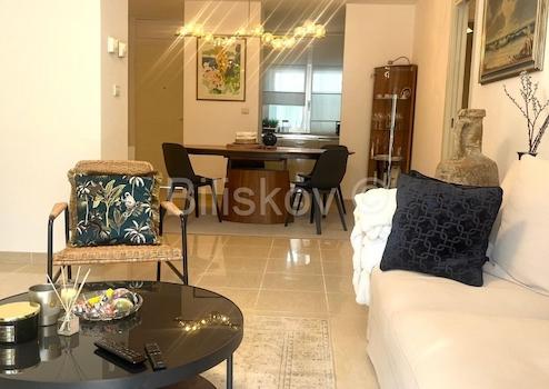 Sie besteht aus einer Küche mit Esszimmer und Wohnzimmer, zwei Schlafzimmern, einem Badezimmer und einer Loggia.