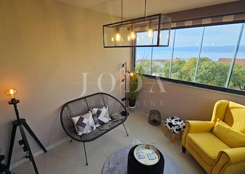 Modern gestaltete, sorgfältig eingerichtete Wohnung in Crikvenica, an hervorragender Lage, zum Verkauf. Sie befindet sich im 2. Stock und erstreckt sich über zwei Etagen. Mit einer Gesamtwohnfläche von 161,59 m2 umfasst die Wohnung eine Küche, ein Esszimmer, ein geräumiges Wohnzimmer, ein Schlafzimmer mit Bambusboden, ein elegant gestaltetes Badezimmer, einen Flur und eine geschlossene Terrasse.