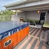 Im Obergeschoss befinden sich eine Treppe, die zu zwei zusätzlichen Zimmern, einem Flur, einem zweiten Badezimmer und einer großzügigen Dachterrasse mit Jacuzzi führt, die einen Panoramablick auf das Meer bietet. Die Wohnung verfügt außerdem über einen Dachboden, einen Parkplatz im Hof und einen eigenen Abstellraum. Diese Immobilie ist ideal für alle, die modernen Komfort in Meeresnähe suchen.