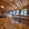 Im nächsten Gebäudeteil finden Sie Vorraum, Esszimmer und eine Kochnische. Nach rechts und links öffnet sich ein Zimmer mit Bad.
