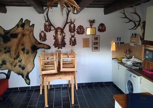 In der zweiten Einheit gibt es eine Wohnküche und zwei Waschräume. Ideal für Zusammenkünfte oder zur Schaffung einer zusätzlichen Wohnung. Unter diesem Gebäudeteil befindet sich ein Keller und dahinter ein 4 m2 großer Kühlraum.