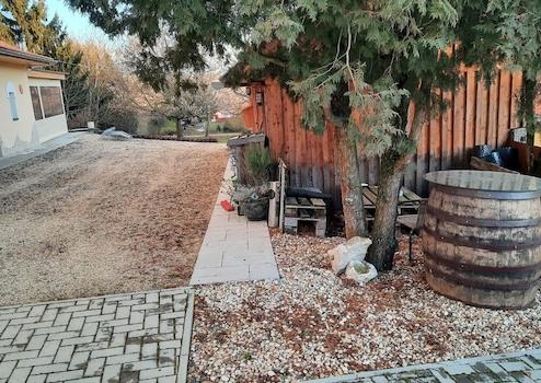 Das Haus verfügt über ein schönes großes Grundstück von 5000 m2. Weitere 2500 m2 möglich in Pacht zu erweitern. Im Hof gibt es einen Parkplatz für vier Autos.