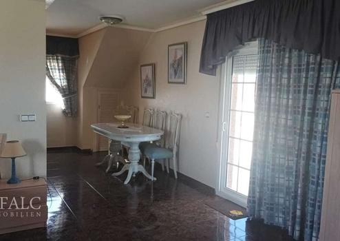 Großzügiger Wohnbereich mit Kamin & direktem Zugang zum Pool. Doppelgarage + Stellplätze für 4 weitere Autos
