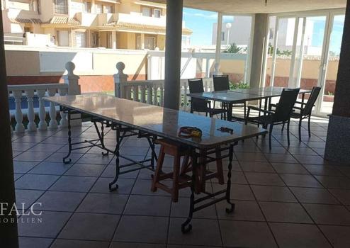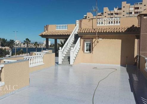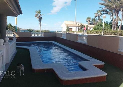 Die elegante Familienresidenz bietet 6 Schlafzimmer, 4 Bäder, 2 Wohn-/Esszimmer und ein Loft mit traumhaftem Blick auf Mar Menor und Mittelmeer. Nur 50 m vom Sandstrand, erstreckt sich die Villa über 3 Etagen: