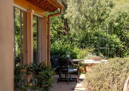 Der Garten des Anwesens lädt zum Verweilen und Entspannen ein und bietet eine grüne Oase der Ruhe. Auf dem Balkon genießen Sie den Blick über die idyllische Umgebung und können die mediterrane Sonne in vollen Zügen auskosten.