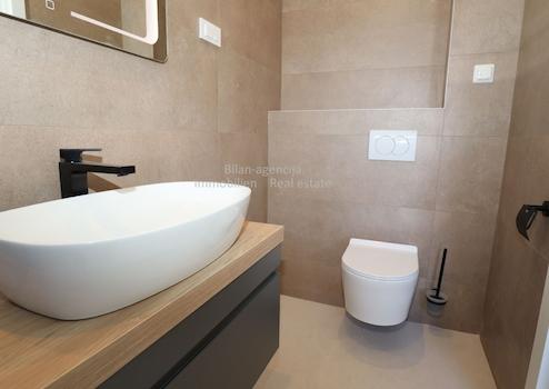 Das Gebäude besteht aus einem Erdgeschoss und zwei Etagen, insgesamt 3 Wohnungen. Alle Wohnungen sind mit einer Klimaanlage und Fußbodenheizung, hochwertigen Türen und Fenstern mit elektrischen Jalousien und Insektenschutz ausgestattet. Die Böden sind mit hochwertigen und modernen Porzellanfliesen belegt.