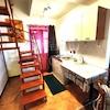 Im Erdgeschoss befinden sich zwei Studio-Apartments, während im ersten Stock und im Dachgeschoss zwei Maisonette-Apartments mit demselben Grundriss untergebracht sind.