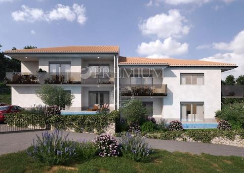 Die Wohnung befindet sich im Erdgeschoss einer modernen Villa, die sich derzeit im Bau befindet.