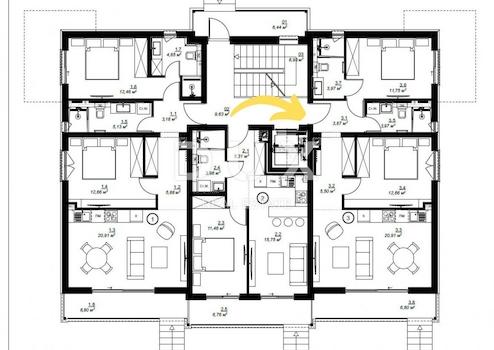 Apartment 3 im Erdgeschoss, Größe 69 m², besteht aus einem Flur, zwei geräumigen Schlafzimmern (jeweils mit eigenem Bad), offenem Wohnzimmer mit Küche und Esszimmer sowie Zugang zu einer großen Terrasse und einem Garten. Der Neubau liegt in einer ruhigen Straße in Meeresnähe und bietet einen herrlichen Blick auf das Meer.