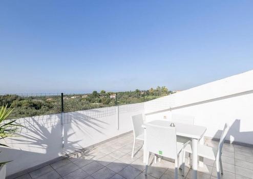 Unit 3 – Ground floor with entrance and stairs to room. Upper floor: living room with panoramic terrace overlooking the Gulf of Asinara, open kitchen, two double bedrooms and bathroom with window and shower.