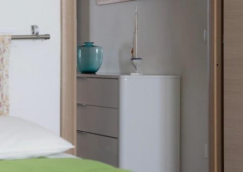 •Unit 2 – Room with living area and dining room, separate eat-in kitchen, bathroom with laundry room. On the night floor: a double bedroom with walk-in wardrobe and main bathroom, two further bedrooms (one of which is a study) and a bathroom with bathtub.
